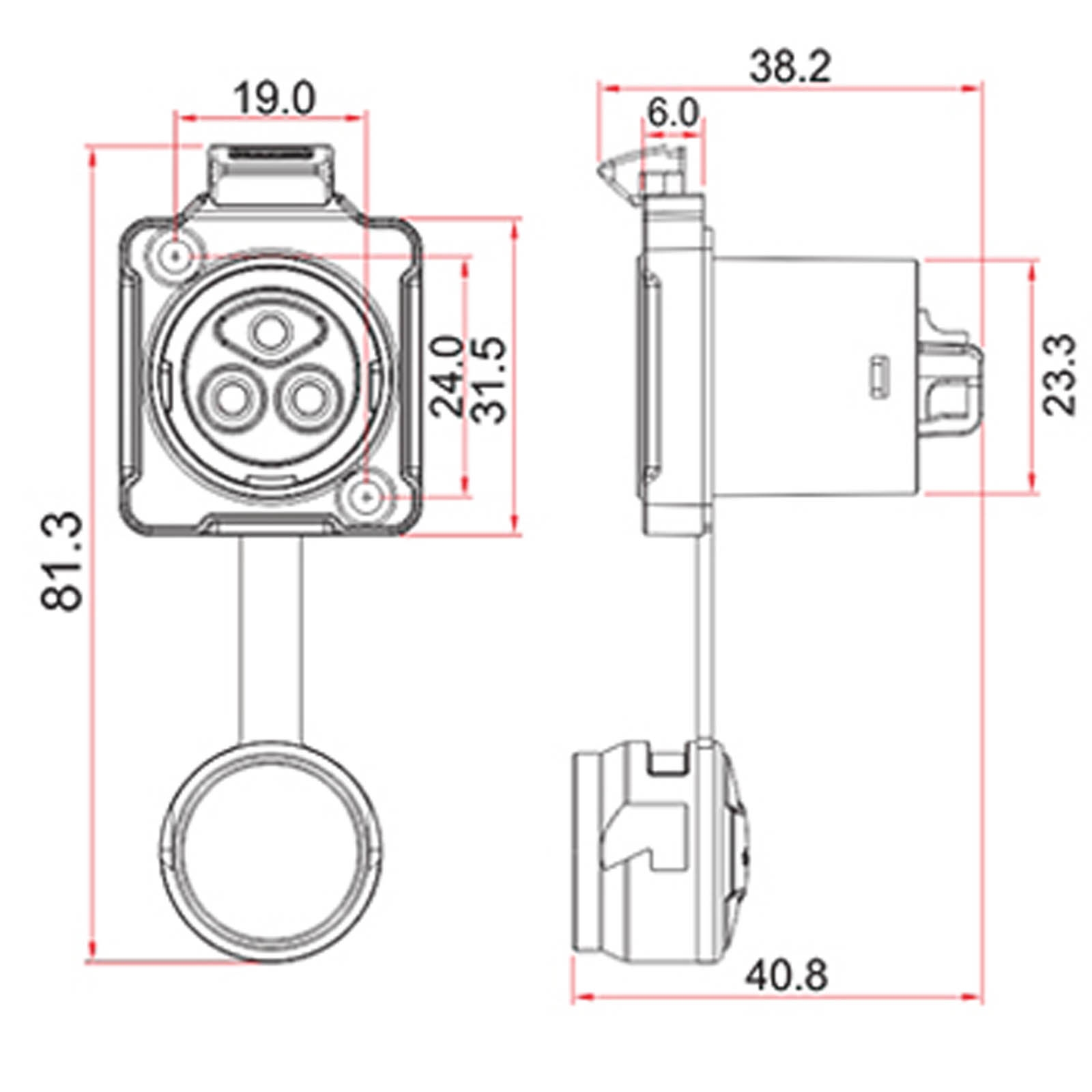 Installation Befestigung Höhe x Breite in mm: 24.00 mm x 19.00 mm