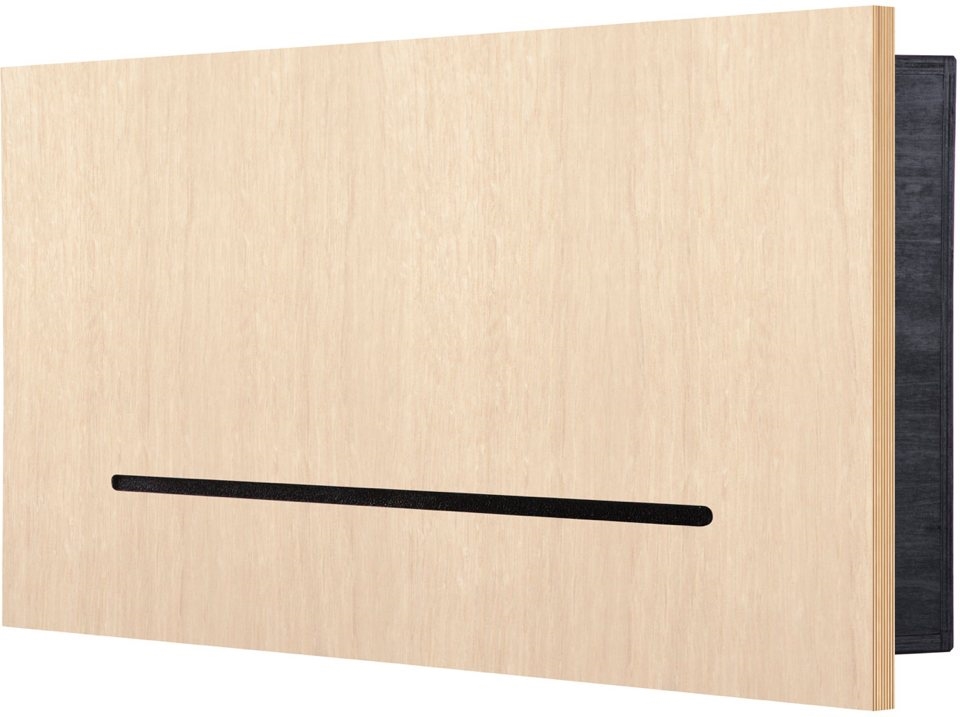 Frontseitig befindet sich der Schallauslass in Form eines 15 mm schmalen Schlitzes. Die rückseitige, sehr geringe Einbautiefe von 73 mm ermöglicht den Einbau z. B. in einen flachen Sockel.