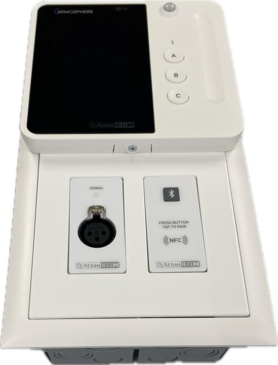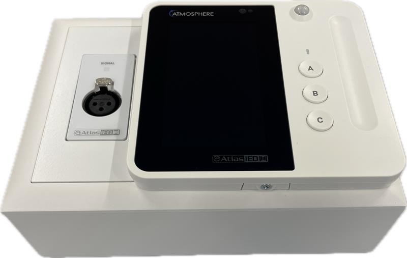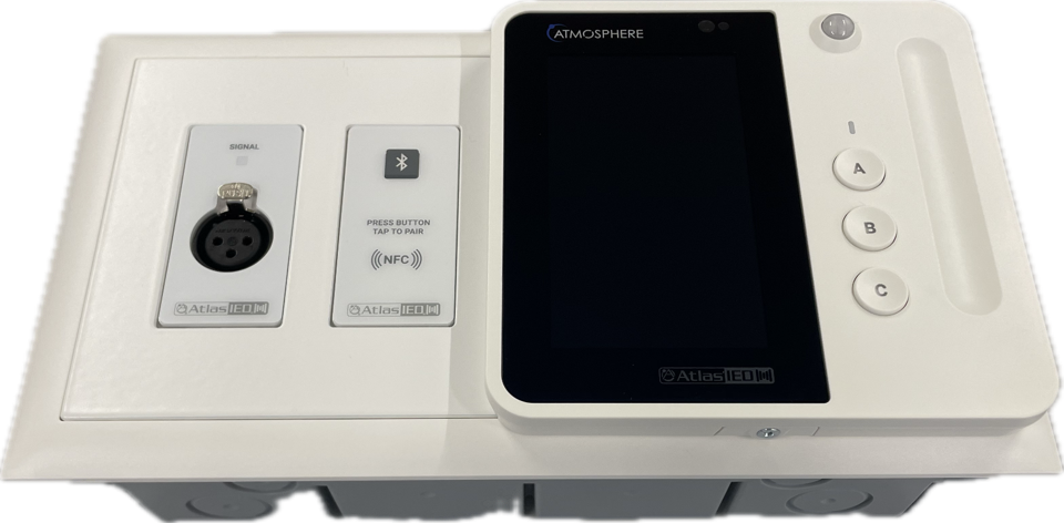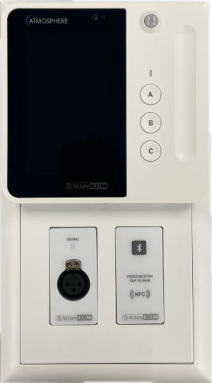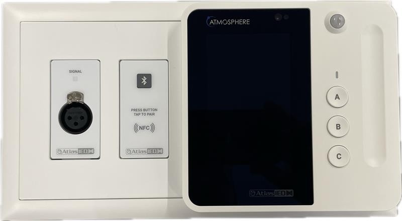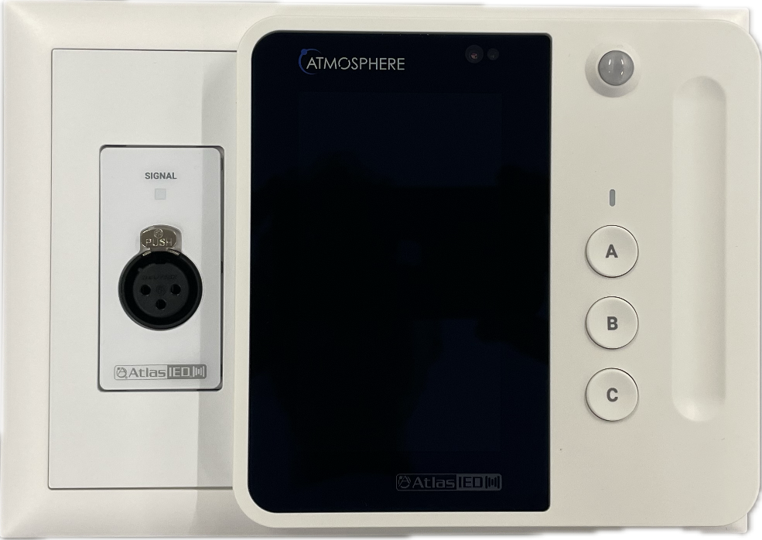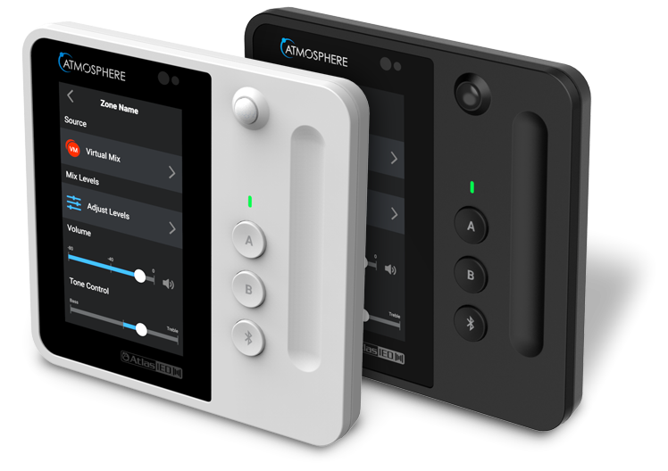 The AtlasIED Atmosphere C-T4 series wall controllers bring advanced functionality and intuitive design to the Atmosphere audio control system. Featuring a 4.3-inch programmable touchscreen, capacitive touch volume slider, and customizable action buttons, these controllers make managing zones, sources, and system actions effortless.