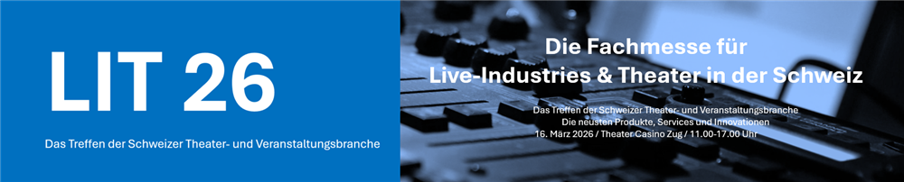 Triff uns am Montag, den 16. März 2026 an der Fachmesse LIT Live-Industrie und Theaterwelt des svtb schweizer verband der technischen bühnen- und veranstaltungsbranche im Theater Casino Zug an der Artherstrasse 2-4 von 11:00 bis 17:00 Uhr: