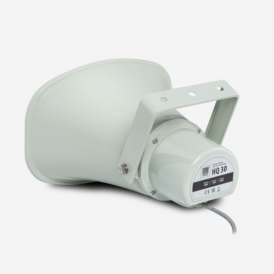 Der HQ 30 ist ein wetterfester Horn-Lautsprecher aus ABS-Kunststoff mit einem 100 Volt-Übertrager. Der Horn-Lautsprecher eignet sich ideal für Sprachmitteilungen in grossen und lauten Umgebungen.