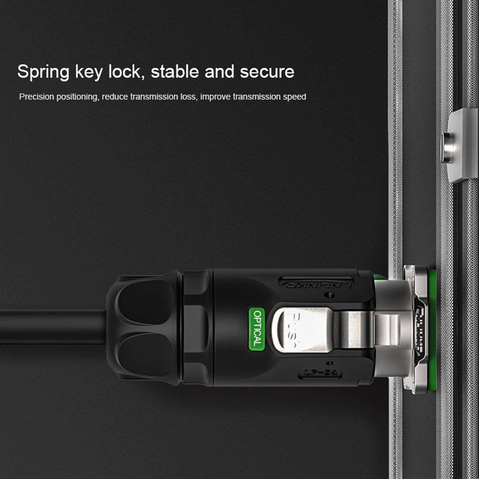 Der LP-24 Glasfaserstecker bietet eine einfache und effiziente Möglichkeit, Glasfaserleitungen in Umgebungen mit Feuchtigkeit, Staub oder anderen widrigen Bedingungen einzusetzen. Das wasserfeste Steckergehäuse schützt die empfindlichen Glasfaserverbindungen vor Feuchtigkeit und ermöglicht eine zuverlässige Übertragung von Daten über große Entfernungen.